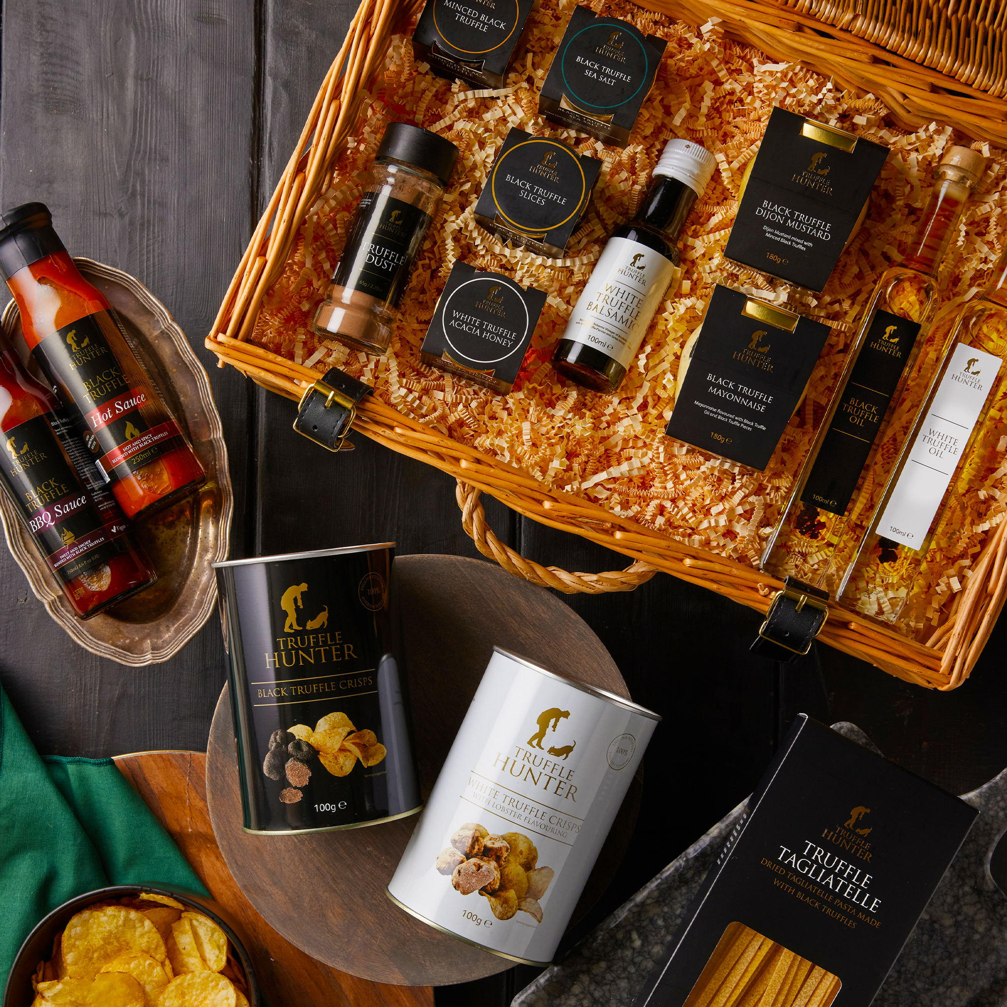 Each hamper includes a handpicked assortment of truffle-infused delights, such as: