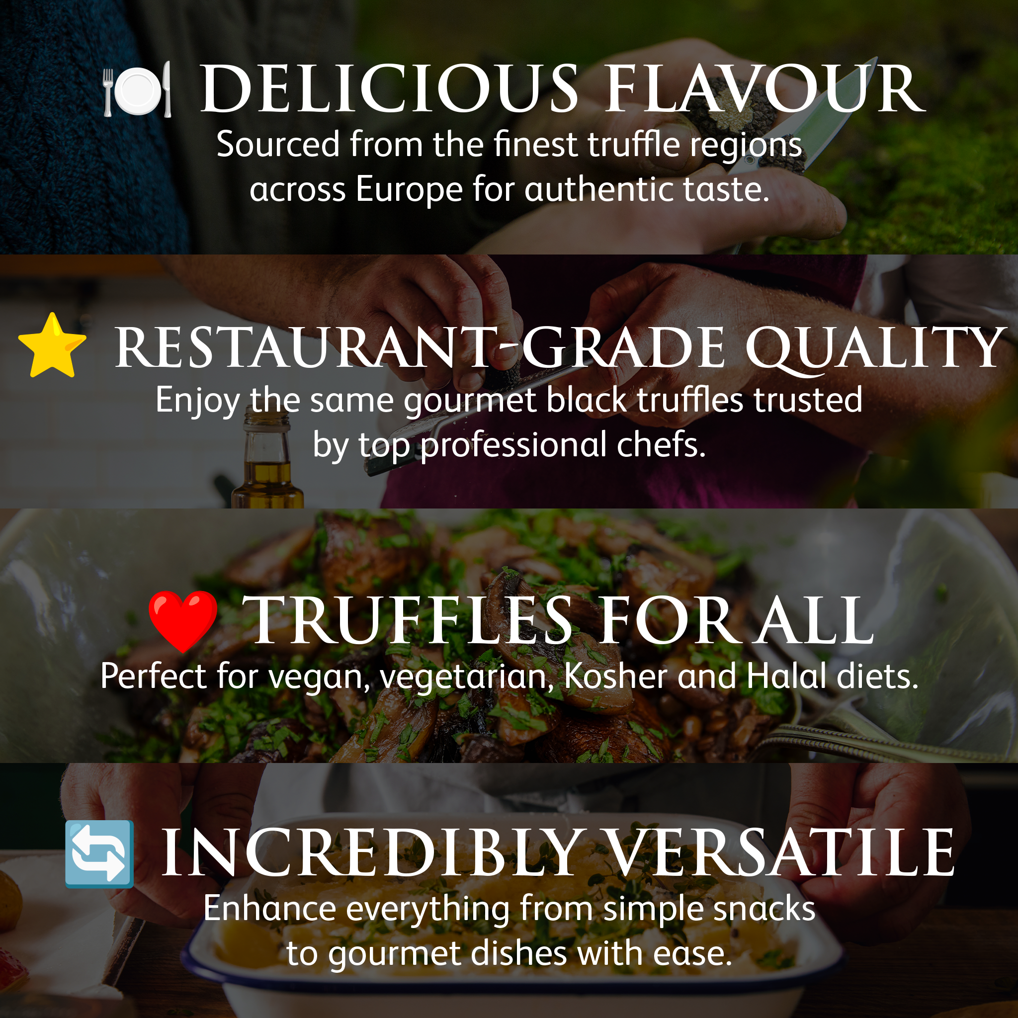 Expect a rich, tangy tomato base with a hint of sweetness, beautifully balanced by the deep, earthy aroma of black truffle. The flavour is smooth, savoury, and indulgent—ideal for those who appreciate a touch of luxury in their condiments.