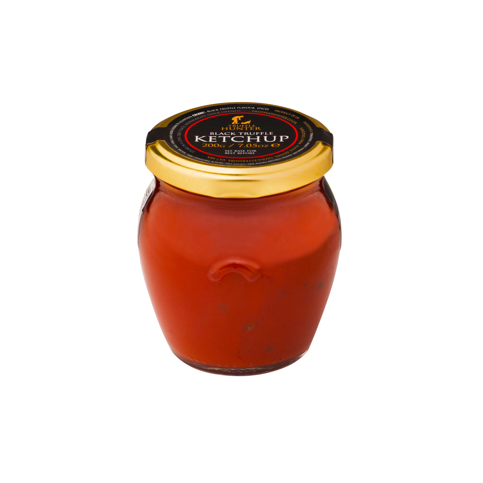 Tomato Ketchup (94%) [Tomatoes, Spirit Vinegar, Sugar, Salt, Spice and Herb Extract (contains Celery), Spices], Minced Black Truffles (2.5%), Extra Virgin Olive Oil, Olive Oil, Black Truffle Flavour
