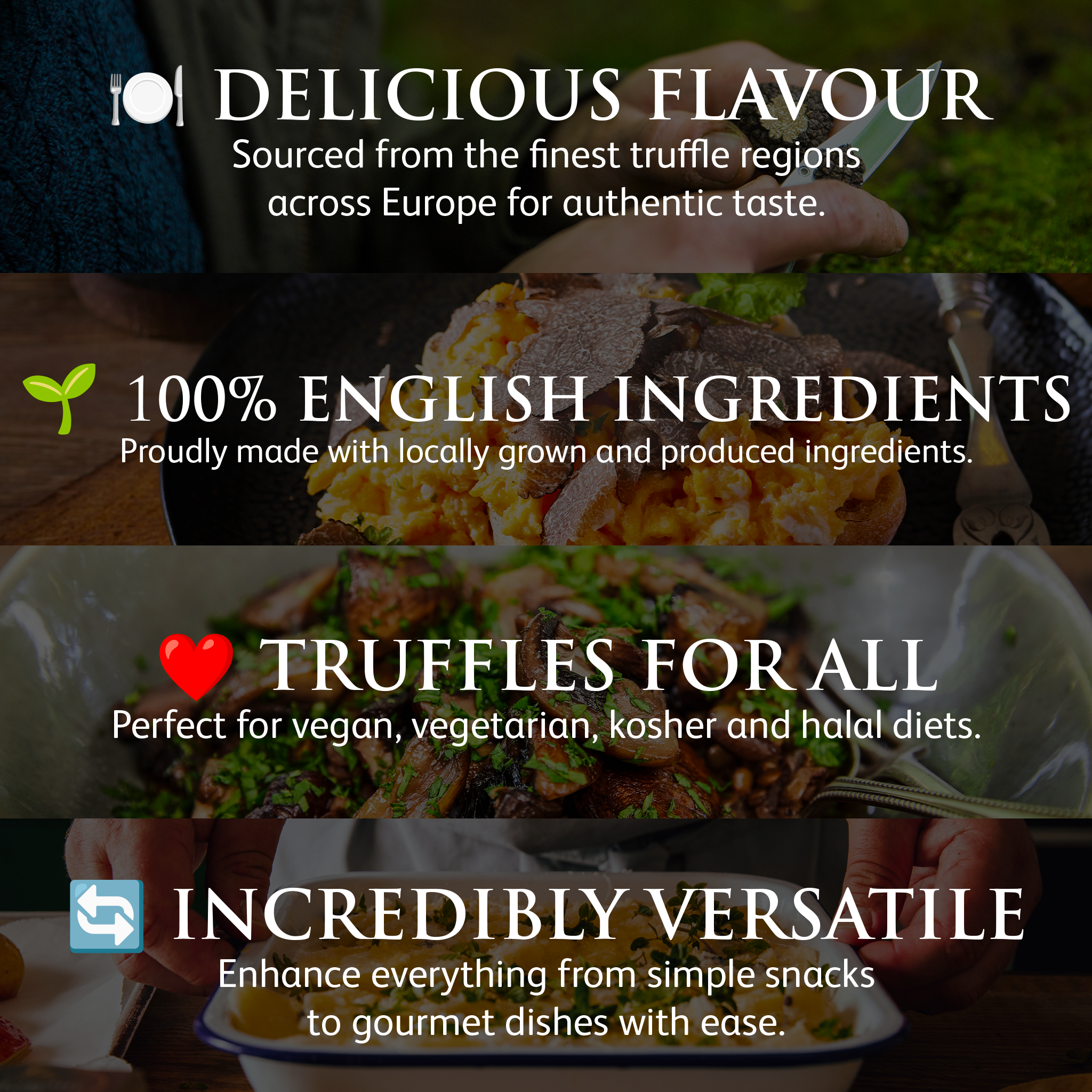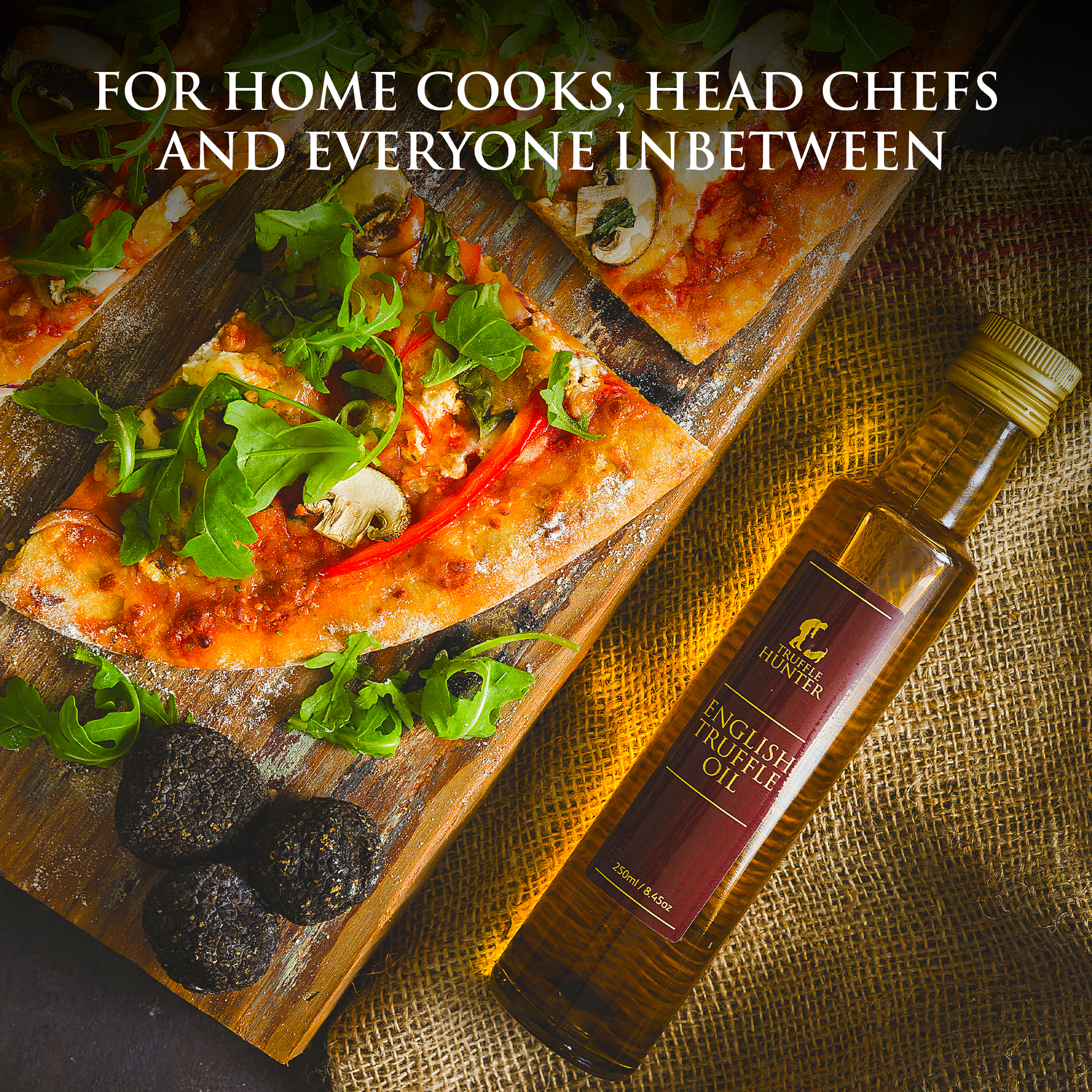 TruffleHunter’s English Truffle Oil is a premium culinary oil made using 100% English ingredients. We blend cold-pressed rapeseed oil with the rich, earthy flavour of real English black truffle to create a truly local gourmet experience. Carefully crafted in small batches, this oil celebrates British produce and indulgent flavour.